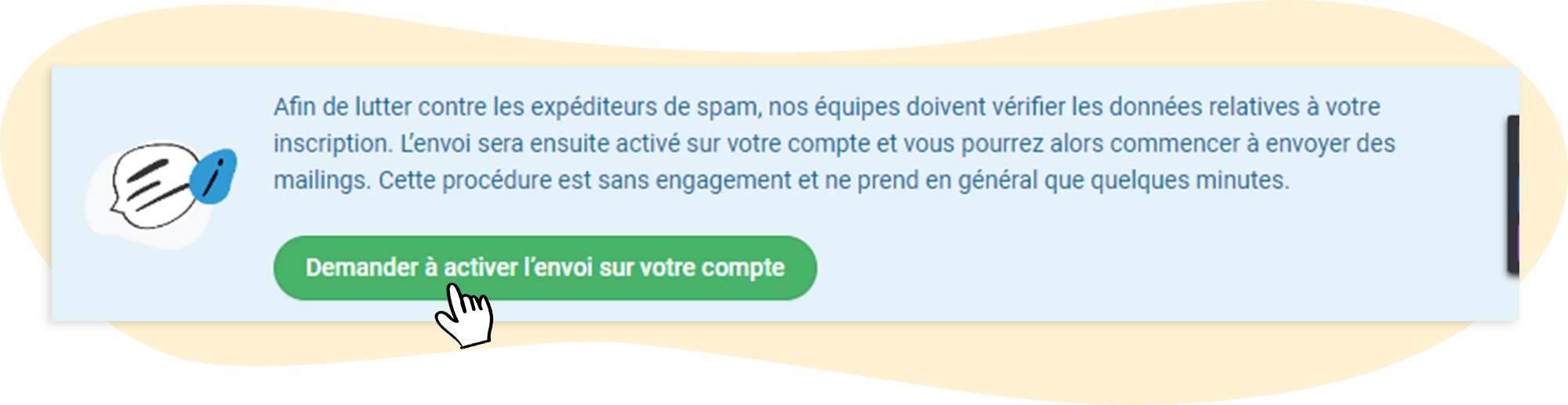 Dès que notre équipe aura vérifié vos informations, vous recevrez un email de confirmation et vous pourrez commencer à tester l'envoi de vos mailings !