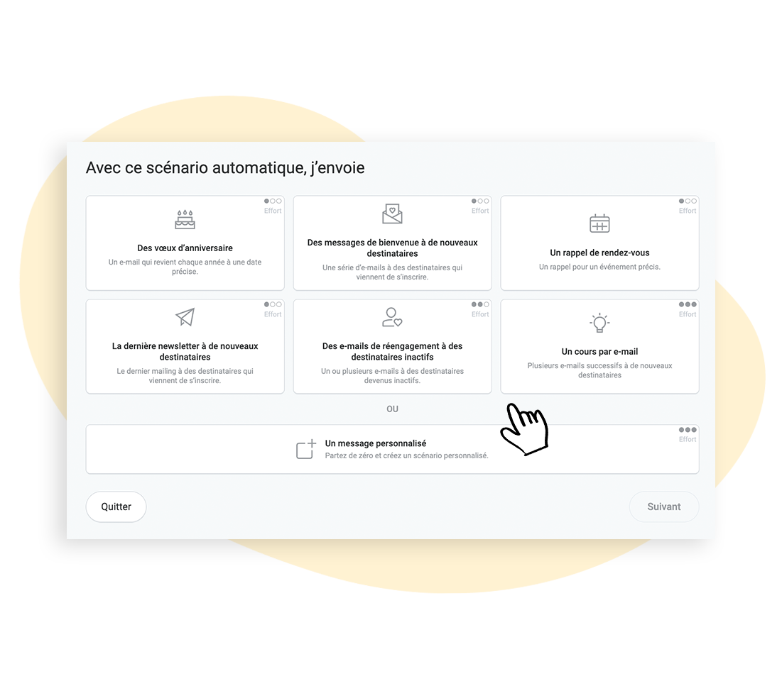 Nos différents modèles sont disponibles pour la création d’une série d’automatisation : processus préconfigurés et modèle vierge pour une personnalisation complète.