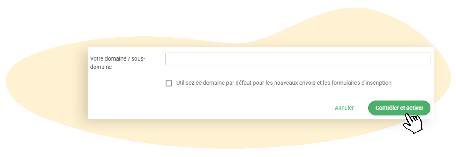 Après une vérification réussie, le nouveau domaine sera automatiquement utilisé comme paramètre par défaut pour vos prochains envois si la case est cochée. Sinon, vous pourrez choisir manuellement le domaine dans l'éditeur pour chaque envoi.