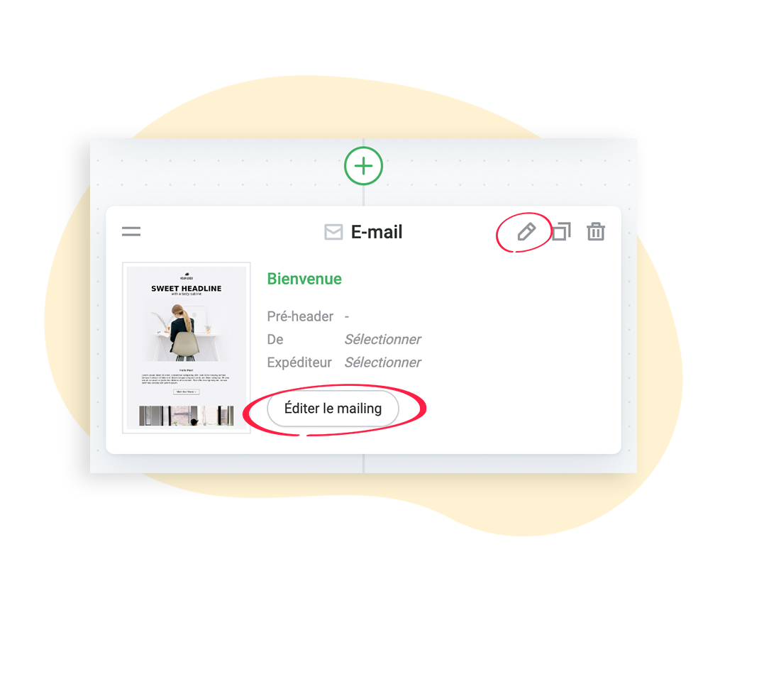 Le déclencheur temporel permet ainsi d'éviter une surcharge de messages de bienvenue tout en vous offrant beaucoup plus de liberté dans la conception de votre e-mail. Vous pouvez modifier et personnaliser le mailing en cliquant sur le bouton associé Éditer le mailing.