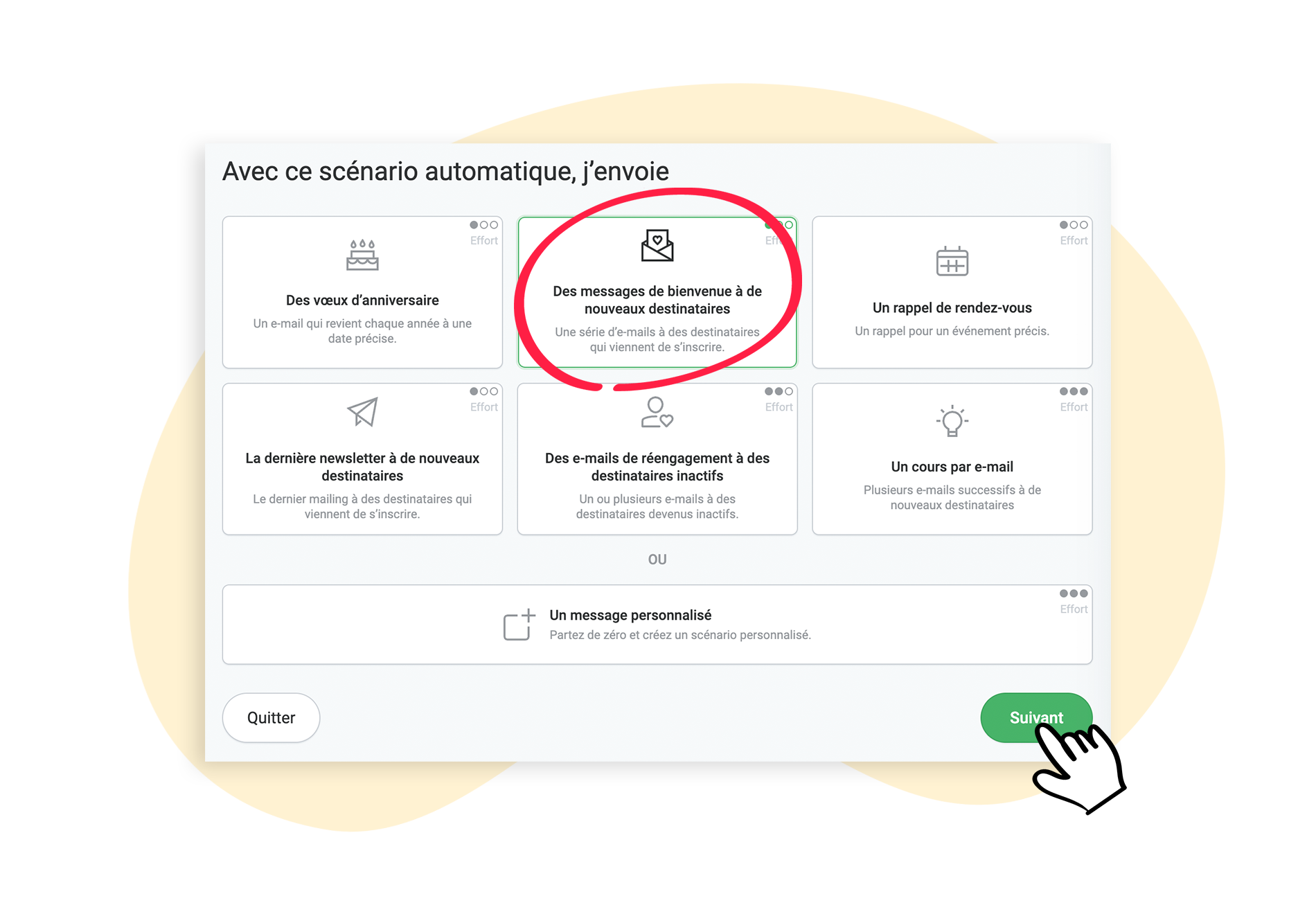 Vous souhaitez accueillir personnellement les contacts qui viennent de s’inscrire à votre newsletter ? Utilisez pour cela cette automatisation préconfigurée.