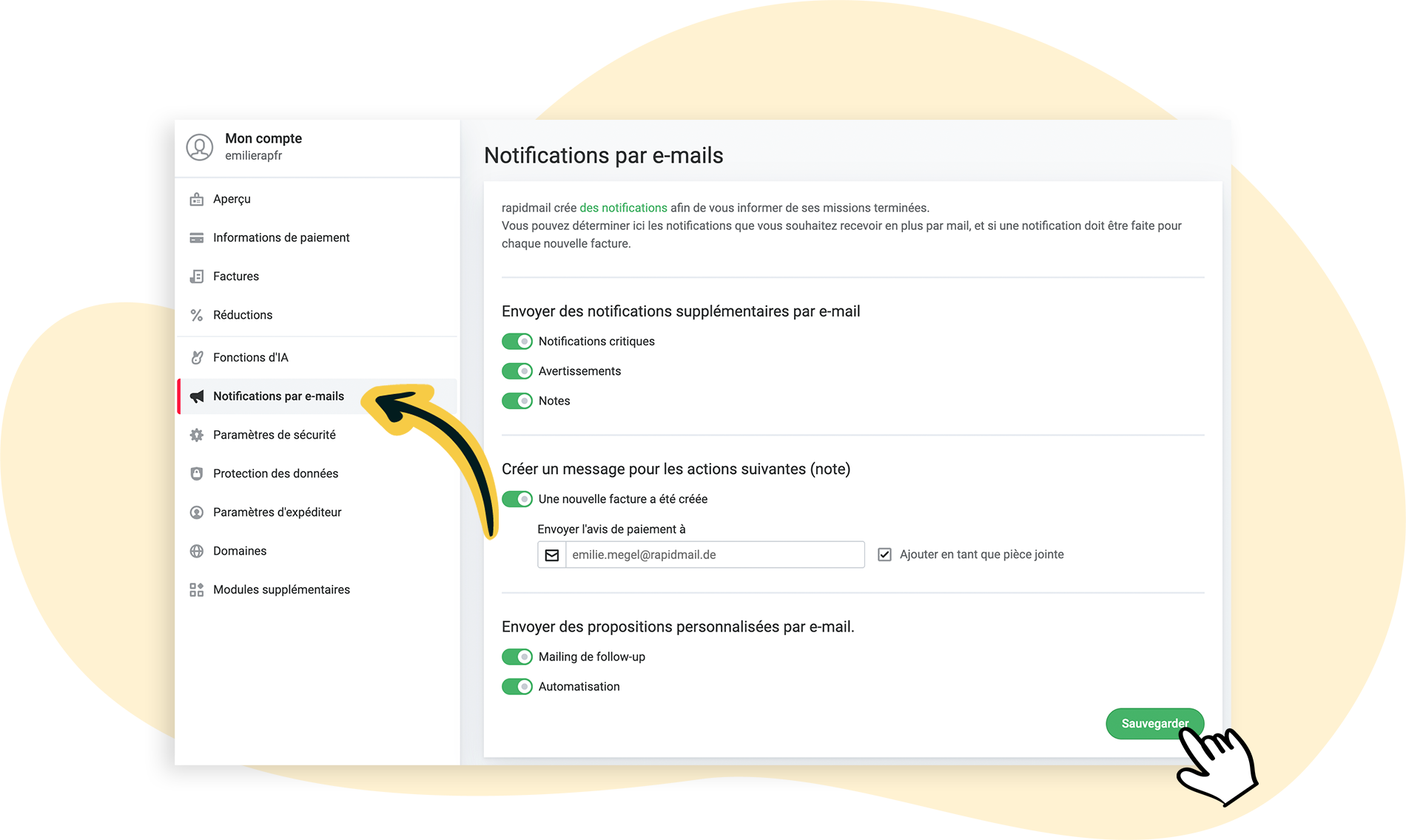 Gérer vos notifications par email sur rapidmail