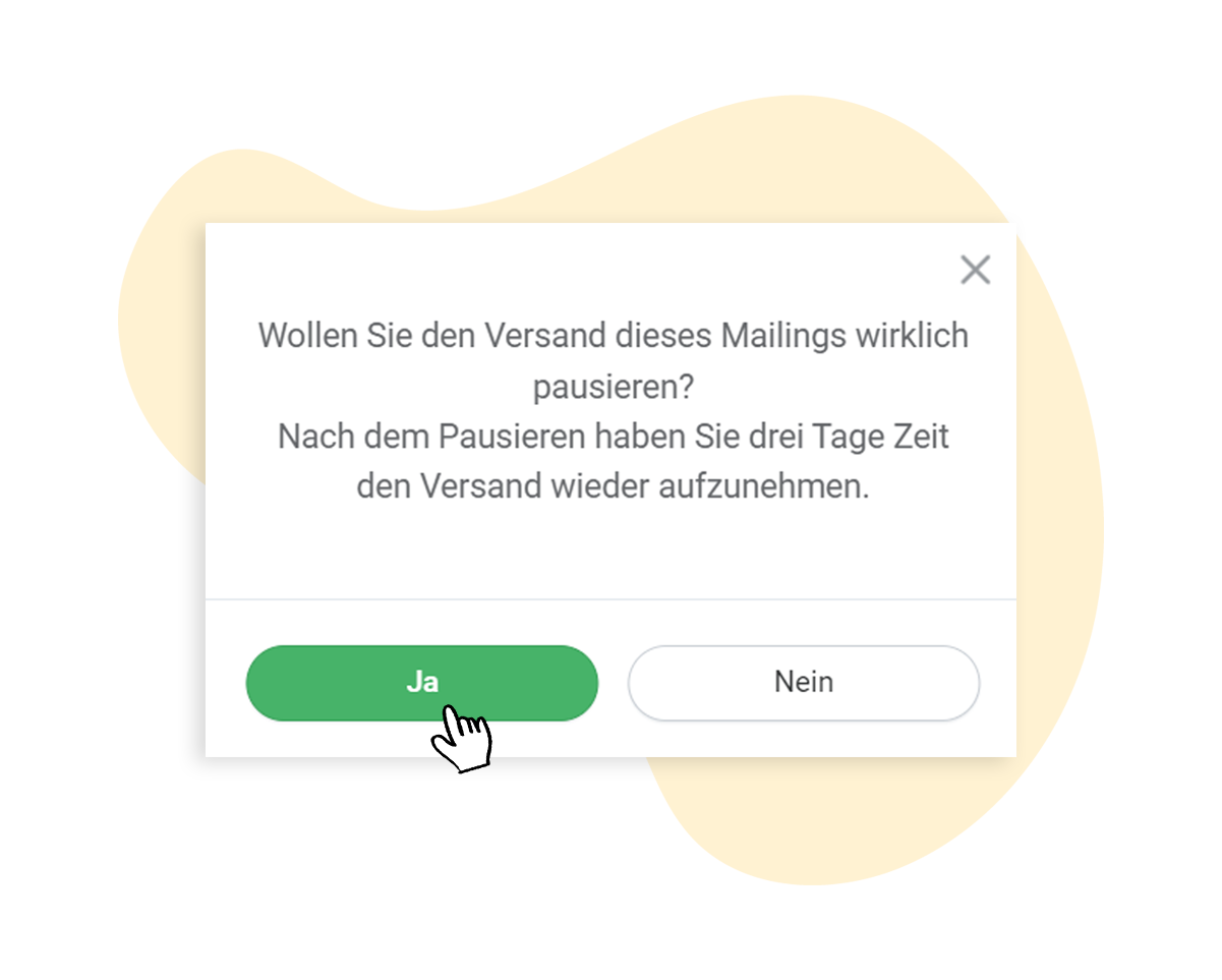 Ihren pausierten Versand können Sie innerhalb der nächsten 3 Tage wieder aufnehmen, danach wird der Versand abgebrochen.