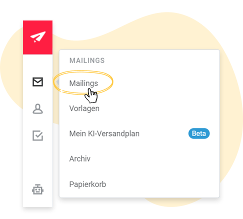 Connectez-vous à votre compte rapidmail. Cliquez sur le point 'Mailings' dans le menu de navigation à gauche pour accéder à votre aperçu des mailings.