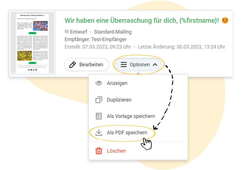 Vous avez la possibilité d'enregistrer vos newsletters rapidmail envoyées ou le brouillon de newsletter au format PDF. Dans cet article, nous vous montrons comment cela fonctionne.
