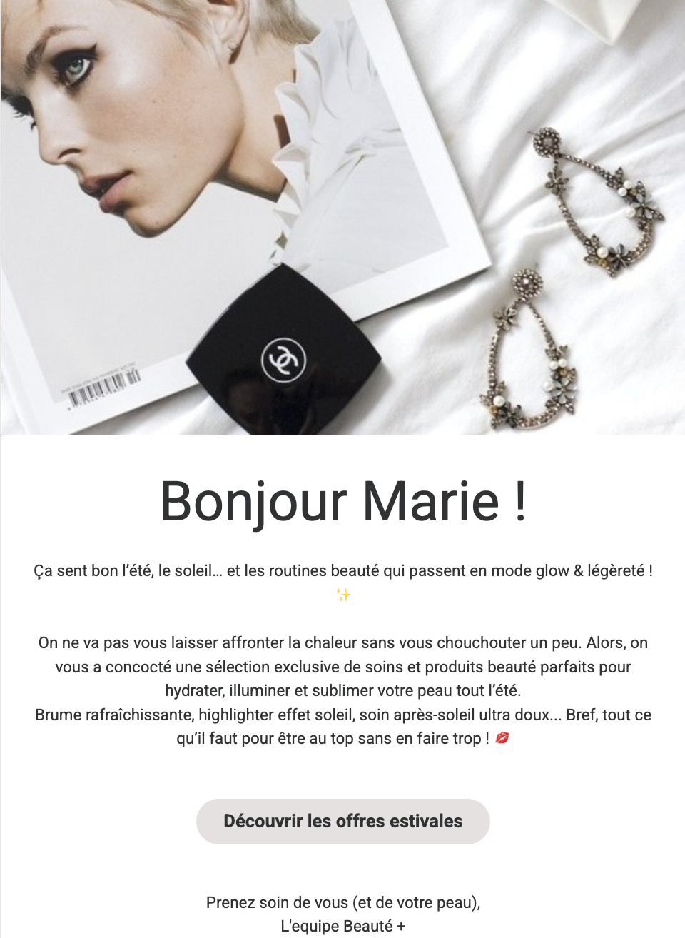 - Exemple : "Vous avez ouvert votre dressing ce matin pour réaliser qu'aucune tenue ne vous inspire pour l'été ?"