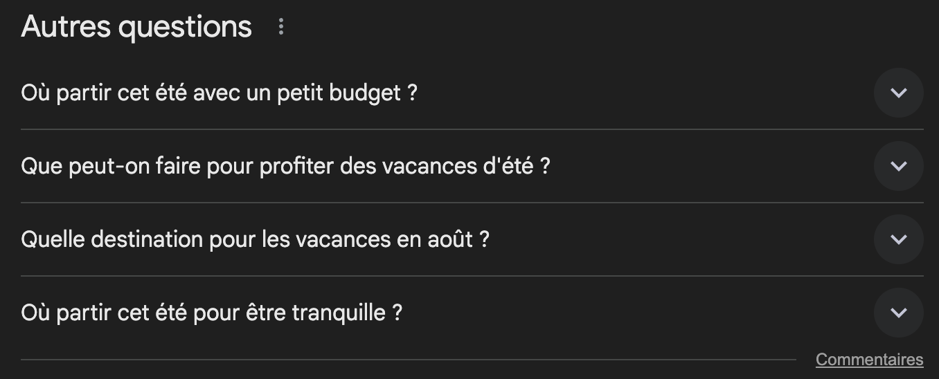 Ne vous arrêtez pas à la liste de suggestions ! Une fois la recherche lancée, descendez un peu pour trouver l'encadré "Autres questions posées" (People Also Ask). C’est une mine d’or pour structurer le corps de votre newsletter : chaque question affichée est une opportunité de titre ou de paragraphe pour vos emails.