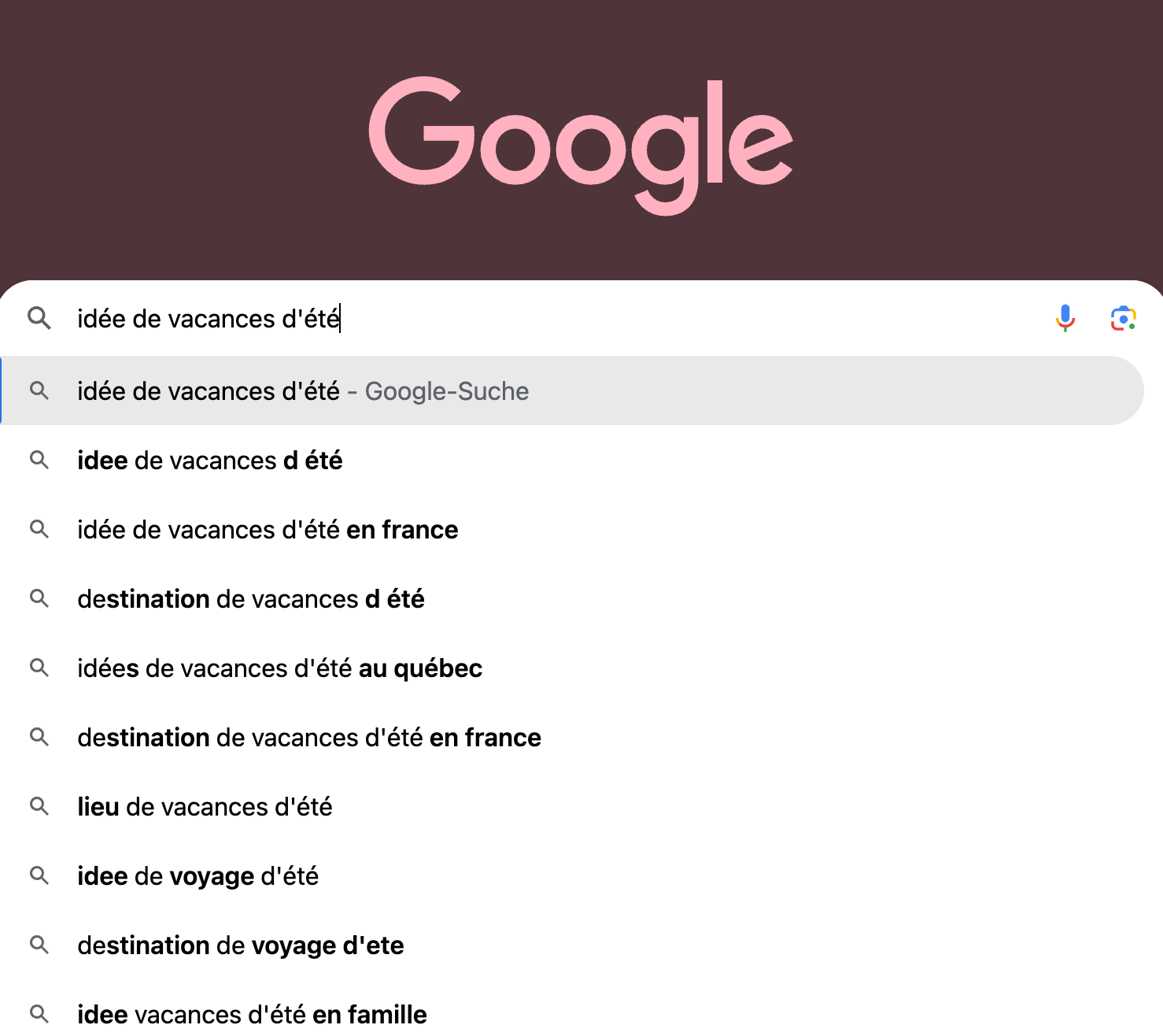 Lorsque vous commencez à taper vos mots-clés dans Google, la fonction Google Suggest affiche une liste de prédictions. Ces suggestions ne sont pas le fruit du hasard : elles représentent les requêtes les plus populaires et les plus actuelles des internautes.