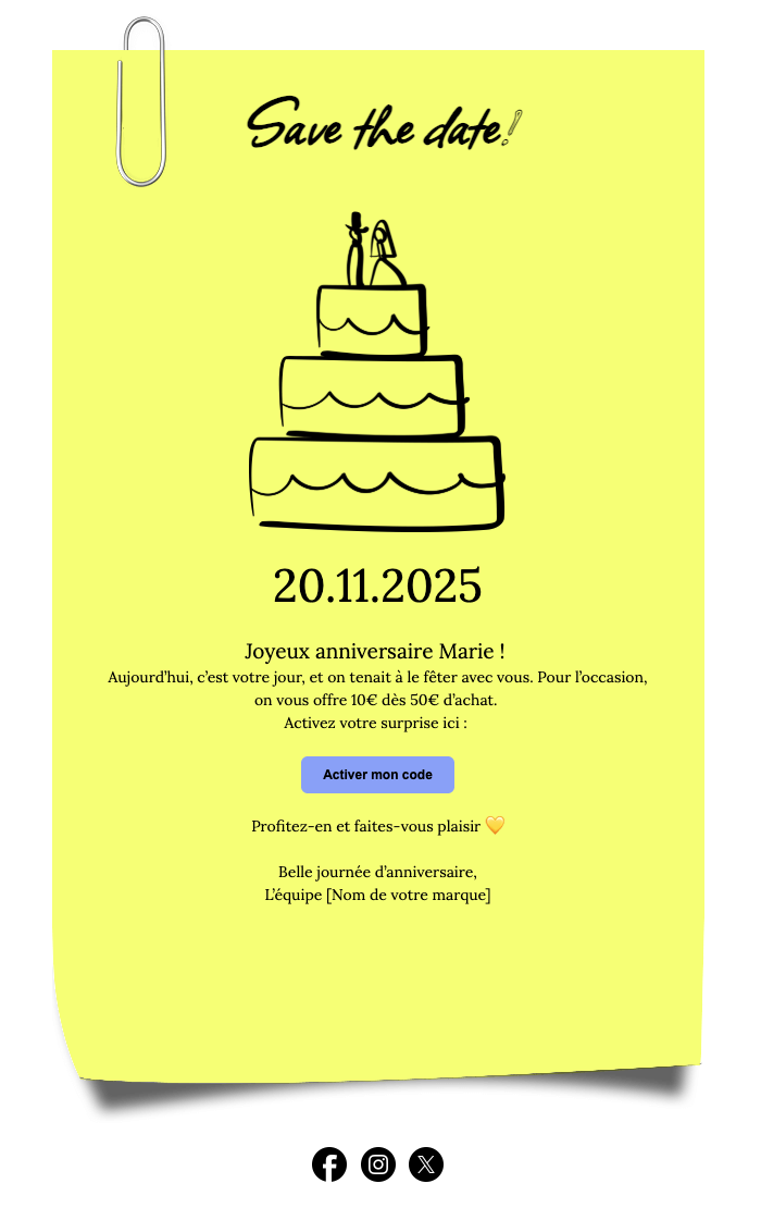 Rien n'est plus efficace qu'une attention particulière pour un événement personnel. Envoyer un message dédié (souvent accompagné d'une petite surprise ou d'un code promo) transforme un simple abonné en un client fidèle.