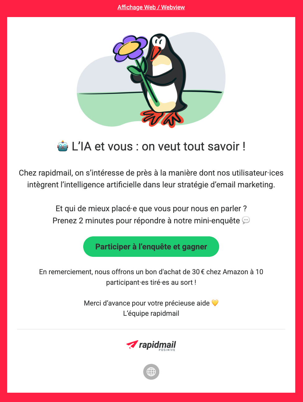 Il vous suffira ensuite d’ajouter un CTA dans votre newsletter, qui redirigera vos abonné·es vers le questionnaire.