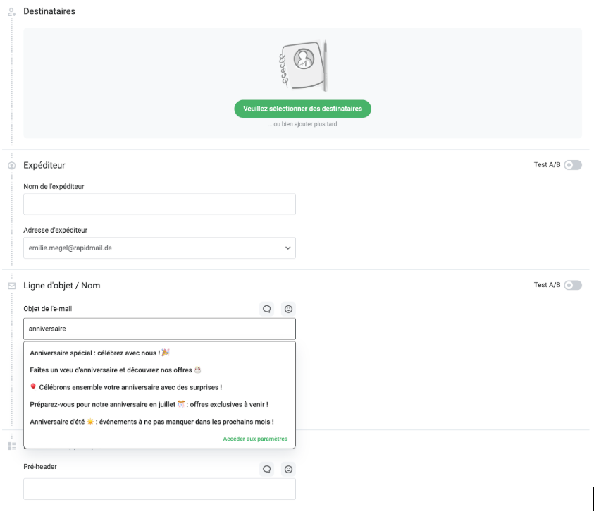 Avec rapidmail, vous pouvez maintenant vous appuyer sur l’intelligence artificielle pour booster votre email marketing et générer des objets personnalisés et pertinents en quelques secondes.