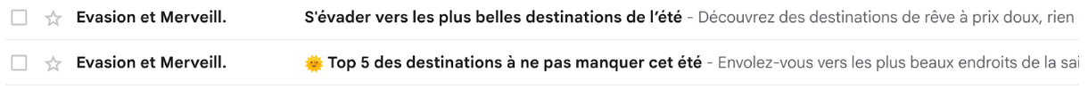 Voici quelques exemples d'objets intéressants pour vos mails :